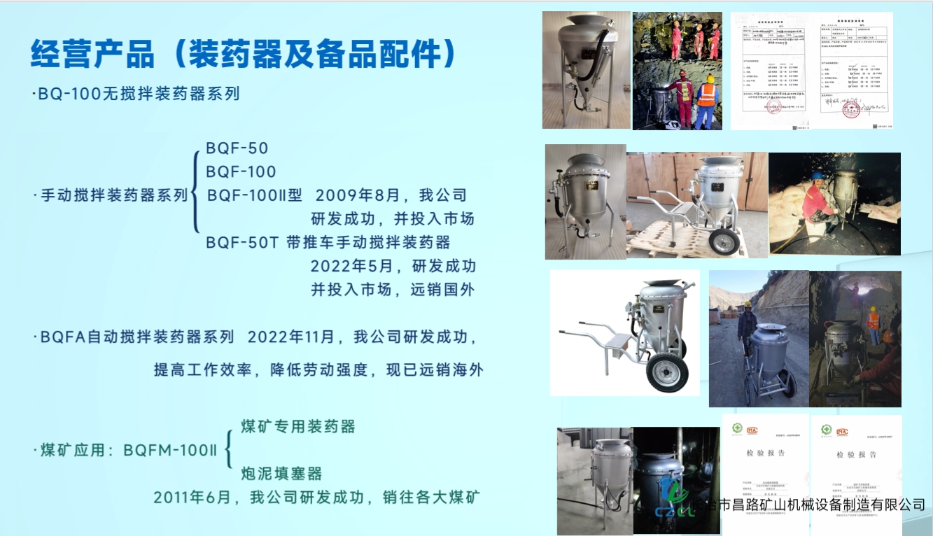 由于井下頻繁裝藥作業(yè),手動(dòng)攪拌易導(dǎo)致裝藥密度不均,爆破質(zhì)量也有提升的空間,我公司經(jīng)過(guò)多次實(shí)驗(yàn),于2022年創(chuàng)新研發(fā)BQFA自動(dòng)攪拌系列裝藥器,在裝藥過(guò)程中,搬運(yùn)方便,減少施工作業(yè)時(shí)間,裝藥均勻,提高工作效率,降低勞動(dòng)強(qiáng)度,裝藥器的各項(xiàng)性能得到顯著的提高,在福建某礦山首次使用,得到礦山的大力認(rèn)可和推薦。